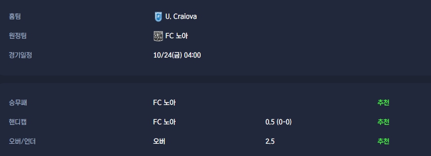 2025-10-24 [UEFA Conference League] U. Craiova VS FC 노아 분석