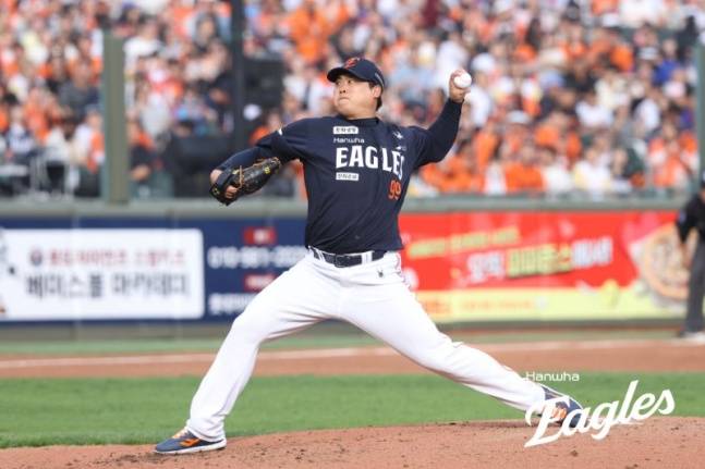 한화는 한 점씩 더 달아나며 승리를 확정했다. 7회초 선두타자 이원석이 볼넷, 페라자가 우전 안타로 무사 1, 2루를 만들었다. 2루 주자 이원석이 손성빈의 견제에 아웃당하는 상황에도 문현빈은 좌중간 외야를 가르는 1타점 적시 2루타로 분위기를 살렸다.