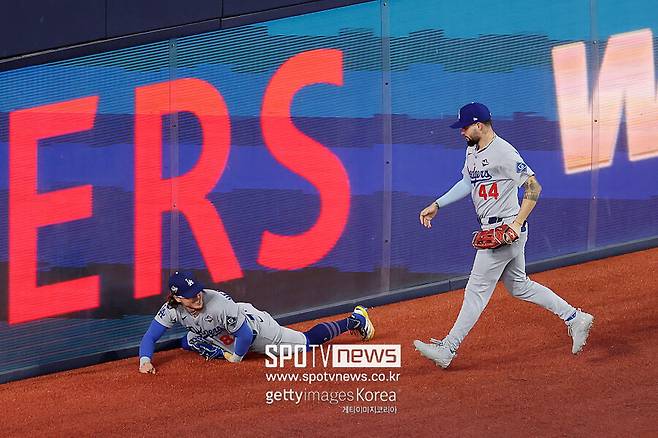 자칫 다저스의 승부수가 소득 없이 끝날 수도 있었다. 다저스는 9회말 1사 1, 2루 위기가 오자 야마모토를 마운드에 올렸다. 전날(10월 31일) 6차전에서 6이닝 1실점을 기록하며 96구를 던졌던 선발투수가 단 하루도 쉬지 않고 7차전에 구원 등판한 것이다. 이 승부수가 야수 충돌이라는 황당한 실수로 물거품이 될 뻔했다.