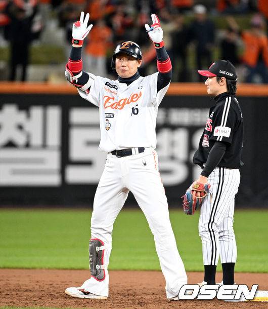 가을야구에서도 10경기 전부 주전으로 뛰며 중용됐다. 플레이오프, 한국시리즈 다 합쳐 타율 3할3푼3리(36타수 12안타) 4타점 OPS .776으로 활약하며 하위 타선에서 강한 존재감을 보였다. 비록 한화는 김경문 감독의 투수 운영이 실패로 돌아가 LG에 1승4패로 막혀 우승이 좌절됐지만 7년 만에 가을야구를, 19년 만에 한국시리즈를 경험했다.