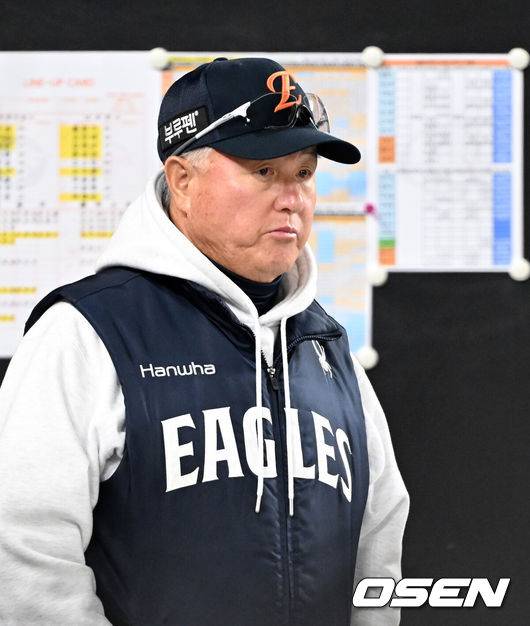 결국 31일 대전 한화생명볼파크에서 열린 5차전도 LG에 1-4로 패하면서 한화는 시리즈 전적 1승4패로 우승이 좌절됐다. 최고 시속 150km로 구속이 뚝 떨어진 문동주를 1이닝 만에 교체하며 불펜을 가동했지만 타선이 터지지 않았다. 1-2로 뒤진 3회 무사 1,2루에서 팀 내 최고 타자 문현빈에게 보내기 번트 사인을 냈지만 4구째 번트 파울이 나오면서 불리한 카운트에 몰렸고, 7구까지 승부를 이어갔지만 2루 땅볼로 4-6-4 병살타를 치면서 흐름이 끊겼다. 1점차이긴 했지만 지고 있는 상황에서 타격감 좋은 타자에게 보내기 번트 사인을 냈다 낭패를 봤다.