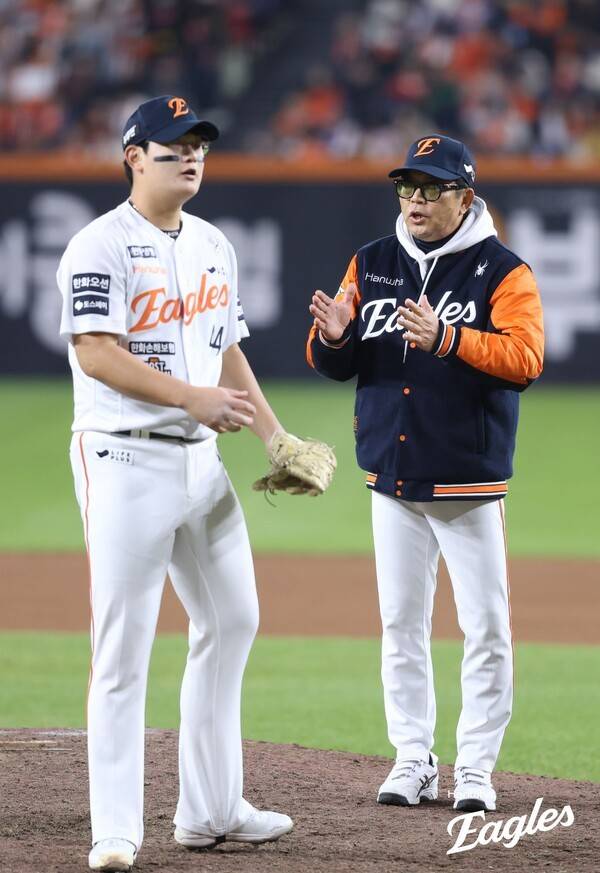 앞서 와이즈가 신민재에게 2루타를, 김범수가 김현수에게 안타를 맞으며 실점하자 한화 코치진은 바로 마운드에 올랐다. 그러나 김서현이 볼넷과 홈런으로 실점하는데도 김서현을 그대로 믿었다.
