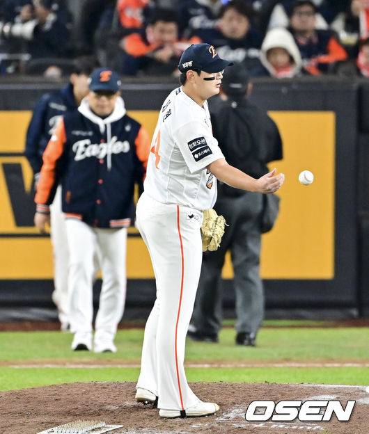 마무리를 맡은 첫 시즌인 올해 33세이브를 거두며 한화가 2위에 오르는 데 크게 기여한 김서현이지만 후반기 들어 흔들리기 시작했다. 시즌 마지막 경기였던 지난 1일 문학 SSG전에서 9회 2사 후 현원회, 이율예에게 연속 투런 홈런을 맞고 끝내기 패배를 허용하며 고개를 숙였다. 한화의 정규시즌 1위 가능성이 사라진 날로 팀 전체가 상당한 충격을 받은 경기였다.