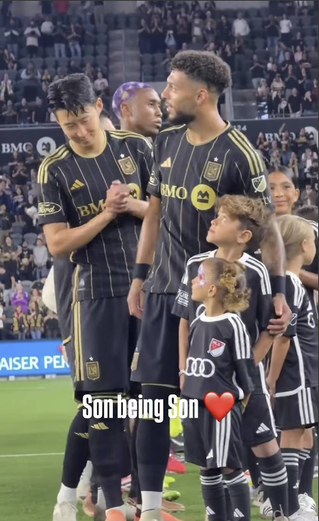 평소에 아이를 좋아하는 손흥민의 모습이 그대로 나왔다. 손흥민은 에스코트 키즈들이 나가기 전에 얼굴을 쓰다듬어주면서 이뻐해줬다. 손흥민의 인간적인 면모가 나오는 장면이었다. MLS 공식 채널은 손흥민의 이 모습을 SNS에 올렸고, 이는 폭발적인 반응을 이끌어내고 있는 중이다. 벤 데이비스가 괜히 손흥민에게 아들의 대부를 맡긴 게 아니었다.