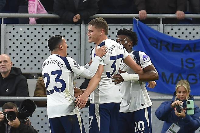 토트넘은 27일(이하 한국시각) 영국 리버풀의 힐 디킨슨 스타디움에서 열린 에버턴과의 2025~2026시즌 잉글랜드 프리미어리그(EPL) 9라운드에서 3대0으로 완승했다. 지난 라운드에서 애스턴 빌라에 1대2로 패한 토트넘은 귀중한 승점 3점을 추가하며 3위(승점 17·5승2무2패)로 올라섰다.