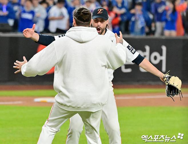 그러나 지난 24일 5차전에서 외국인 원투펀치 코디 폰세와 라이언 와이스를 전부 소모해 한국시리즈 1, 2차전에서 국내 투수들로만 LG를 상대해야 한다.