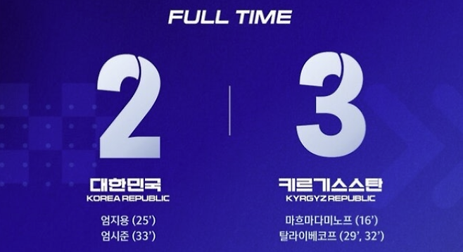 앞서 인도네시아에 0-5 패배, 이라크에 2-3 패배를 당하며 일찍이 대회 탈락을 확정 지었던 한국은 키르기스스탄을 상대로도 승리하지 못하며 3전 전패로 대회를 마무리했다.