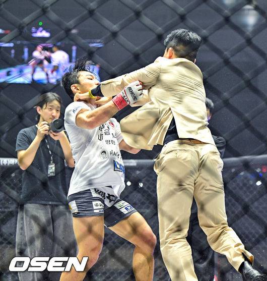 7일 서울 장충체육관에서 열린 굽네 ROAD FC 075 대회 2부 제1경기 플라이급(-57kg) 경기가 끝나고 험악한 분위기가 만들어졌다.