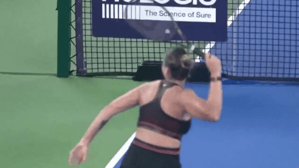 평소 예민하고 날카로운 성격으로 유명한 사발렌카는 1세트 승리로 앞서갔지만, 이후 페굴리에게 흐름을 내줬다. 경기가 뜻대로 풀리지 않자, 사발렌카는 연신 답답하단 제스처를 취했다. 문제는 3세트 11번째 게임 도중 터졌다. 사발렌카는 범실로 포인트를 잃자 분노한 나머지 라켓을 던졌다. 강하게 날아간 라켓은 볼 보이가 위치한 벤치 방향으로 튀었다.