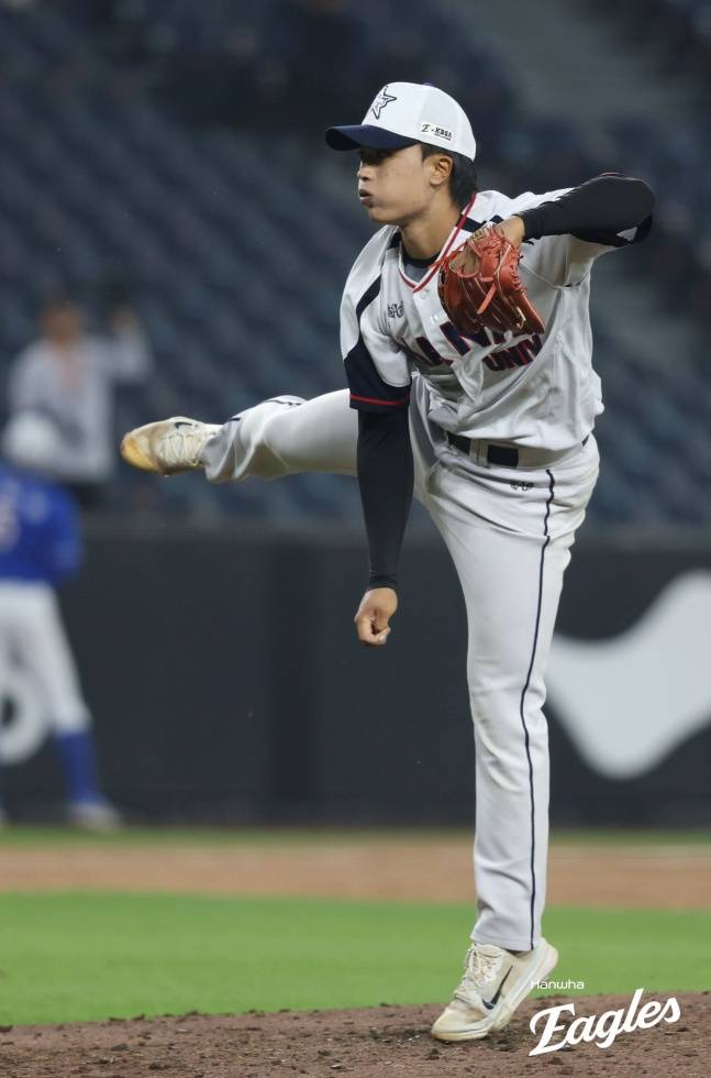 매송중-장충고-한일장신대 출신 박정민은 2026 KBO 신인드래프트 2라운드 전체 14번으로 롯데에 지명된 우완 투수다. 최고 시속 152㎞의 빠른 공을 던지며 체인지업이 강점으로 올해 신인 중 가장 완성돼 있다는 평가를 받는다. 김풍철 롯데 스카우트 팀장은 스타뉴스에 "박정민은 기본적으로 경기 운영 능력이 좋은 선수다. 좌타자, 우타자 가릴 것 없이 마운드에서 공격적인 피칭을 한다"라며 "특히 체인지업 구사 능력이 뛰어난데 직구와 비슷한 궤적으로 떨어져 좌타자들이 대응하기 어렵다"라고 설명했다.