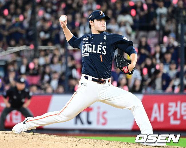 문동주는 플레이오프 대비 연습경기였던 지난 14일 상무전도 선발 류현진에 이어 두 번째 투수로 마운드에 올랐다. 이재원에게 솔로 홈런을 하나 맞긴 했지만 3이닝 3피안타(1피홈런) 무사사구 3탈삼진 1실점으로 막고 최종 점검을 마쳤다. 연습경기에도 최고 시속 159km를 뿌릴 만큼 힘이 넘쳤다.