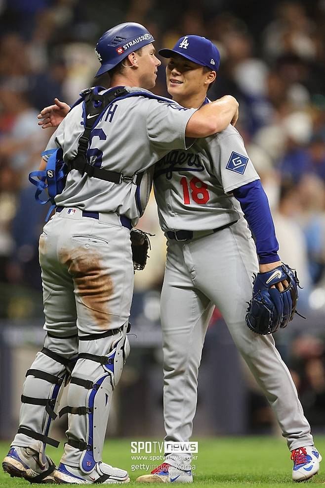 포스트시즌 마무리로 떠오른 사사키 로키가 갑작스런 구속 저하 문제로 경기에 등판하기 어려운 상황. 데이브 로버츠 감독은 이미 8회까지 97구를 던진 야마모토에게 9회까지 맡기기를 주저하지 않았다. 야마모토는 9회 윌리엄 콘트레라스와 크리스티안 옐리치, 앤드루 본을 상대로 삼자범퇴에 성공하며 주먹을 불끈 쥐었다.