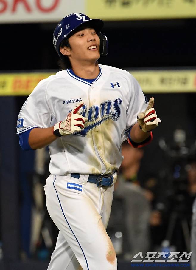 박진만 삼성 감독은 "솔로 홈런을 쳤지만, 분위기를 이어 갈 수 있게 2점보다 3점이 크니까. 흐름을 더 탈 수 있는 홈런을 쳤다"고 이재현을 칭찬했다.
