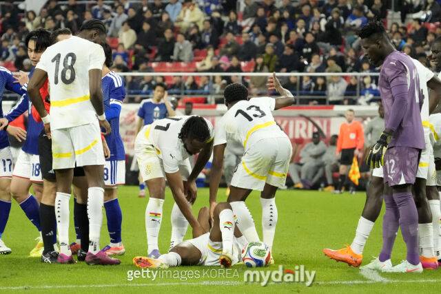 "예의 바른 일본인, 진심으로 고맙다" 파울 당했지만 상대 벤치 찾아가 사과 …충격적인 부상에도 가나 감독 극찬
