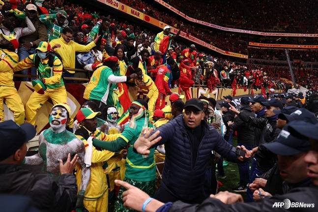 세네갈 주장 사디오 마네가 그라운드에 남아 "이건 미친 짓이다. 경기를 포기하면 안 된다"며 동료들을 설득했지만, 선수들은 감독의 지시에 따라 라커룸으로 향했다. 경기장 분위기는 순식간에 아수라장이 됐다. 흥분한 일부 세네갈 팬들은 관중석에서 의자를 뜯어 집어 던지는 등 난동을 부렸고, 보안 요원들과 충돌까지 발생했다.