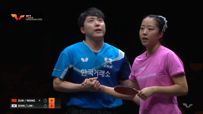쑨잉사의 아픔을 알고 있는 임종훈과 신유빈은 우승 직후 기쁨을 자제했다. 둘은 매치 포인트를 따낸 뒤에도 크게 환호하는 대신 가볍게 하이파이브만 나누고 돌아섰다. 임종훈-신유빈 조는 악수한 뒤 즉시 왕추친과 쑨잉사 곁으로 가서 포옹과 악수를 나누며 경의를 표했다. 신유빈은 쑨잉사의 어깨를 두드리며 부상 상태를 묻기도 했다.