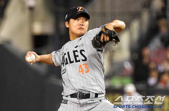 이날 정우주는 1⅓이닝 5타자를 상대로 거의 직구만 던졌다.