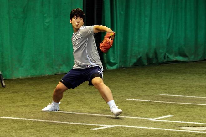 김명신은 올해 8경기 8⅓이닝 출전에 그쳤다. 서른 중반을 바라보는 그가 유망주들 위주의 마무리캠프에 따라나섰다. 김명신은 "2016년 이후 처음이다. 항상 회복조였다. 일단 아픈 곳도 없고 트레이닝파트에서 관리 잘해줘서 만족스럽다"고 소감을 전했다.