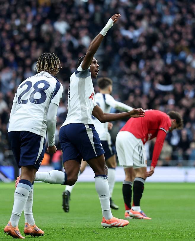 토트넘은 후반 시작과 함께 변화를 줬다. 랑달 콜로 무아니를 빼고 윌손 오도베르를 투입했다. 토트넘은 후반 17분 맨유 골망을 흔들었다. 히샬리송의 스루패스가 브레넌 존슨에게 연결됐다. 존슨이 침착하게 마무리했지만 오프사이드로 골이 취소됐다.