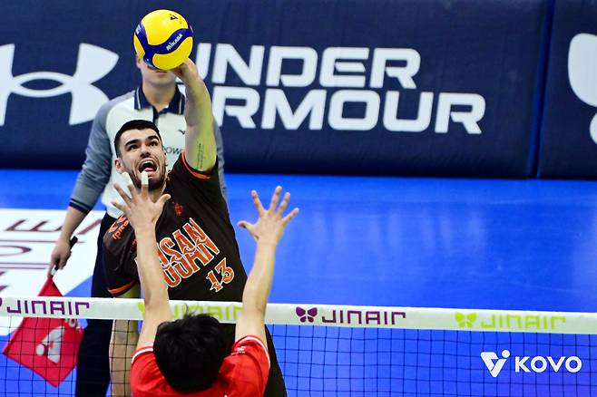 [수원=스포츠조선 이종서 기자] OK저축은행 읏맨이 1,2세트를 내준 뒤에도 풀세트까지 승부를 가는 저력을 보여줬지만, 승리를 잡지 못했다.