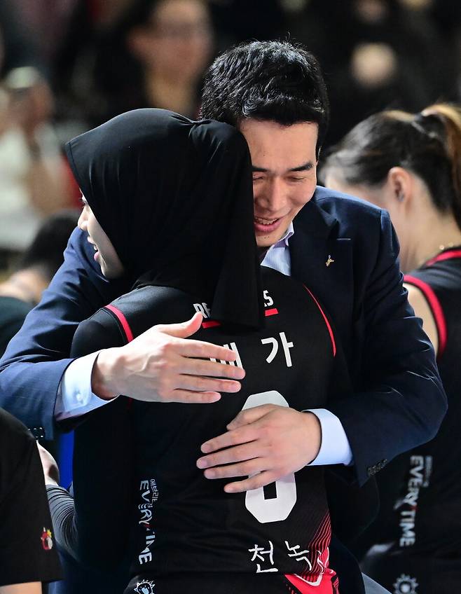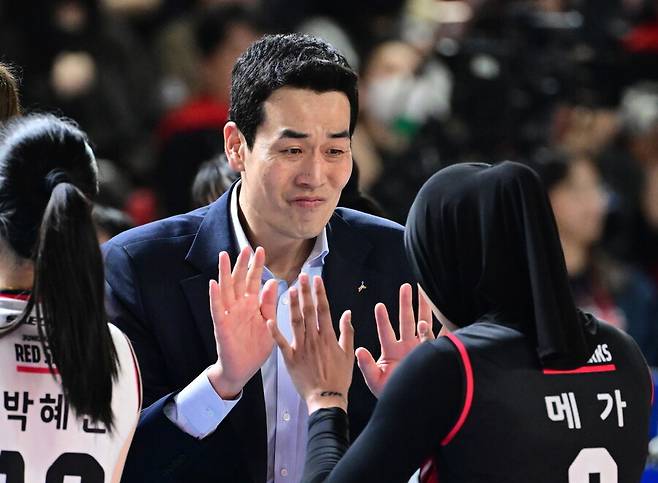 고희진 감독은 "오늘(4일) 메가의 남자친구가 경기를 보러 왔더라. 우리 팀이 0-2로 뒤질 때 메가에게 '남자친구가 한 경기만 보고 가면 아쉽지 않겠냐'고 말했다"라면서 "그랬더니 메가가 살아나더라. 역시 사랑의 힘은 대단한 것 같다"라고 웃음을 지었다.