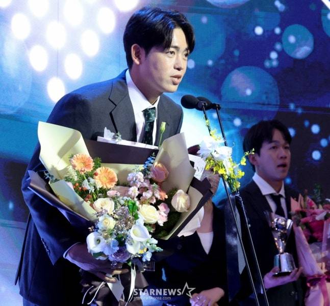 이태양은 지난 24일 서울 롯데호텔 월드 크리스탈볼룸에서 열린 '2025 신한 SOL 뱅크 KBO 시상식'에서 북부리그 승리상을 수상했다.
