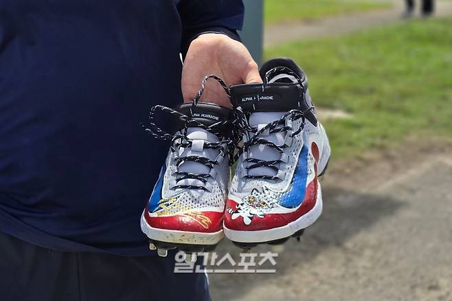이날 박영현은 특별한 스파이크를 신고 훈련에 나섰다. 태극 무늬 색깔과 함께 대표팀을 상징하는 호랑이가 새겨진 스파이크였다. "에이전트에서 대표팀에 간다고 하니까 만들어 주셨다"라고 말한 그는 "국가대표 글러브도 따로 있는데, 아직 못 받았다. 예비 글러브로 공을 받고 있는데, 우석이 형의 공을 계속 받다 보니 조만간 터질 것 같다"라며 고개를 내저었다.