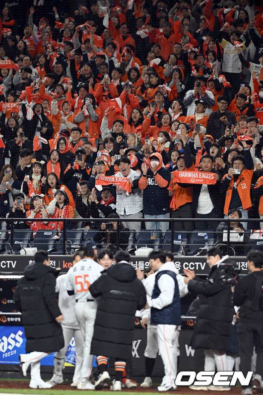 이어 “그곳에는 드럼이 있고, 치어리더가 있고, 미쳐 날뛰는 사람들도 있다. 경기장에 음식도 가져올 수 있고, 밤 나들이를 나온 것 같다. 아내 말로는 우리 구장(대전 한화생명볼파크)이 1만7000명 정도 수용이 가능한데 한국시리즈 티켓 예매 대기가 12만 명까지 갔다고 하더라. 정말 말도 안 되는 일이었다”며 “한국 음식도 그립다. 한국식 바비큐는 비교할 수 없을 만큼 최고다. 퀄리티도 좋고, 여기보다 더 저렴하다”고 말했다.