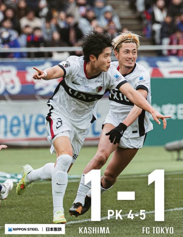 하지만 수적 열세에 놓인 가시마는 후반에 추가 득점에 실패하며 승부차기를 펼쳤다. 오는 여름 일본의 첫 추춘제 시즌을 앞두고 전반기 공백을 메우기 위해 2월 7일부터 5월 24월까지 0.5리그로 치러지는 '100주년 비전 리그'에선 90분 정규시간 동안 비기면 연장전없이 바로 승부차기에 돌입한다. 승부차기에서 승리하면 승점 2, 패하면 승점 1을 얻는다.