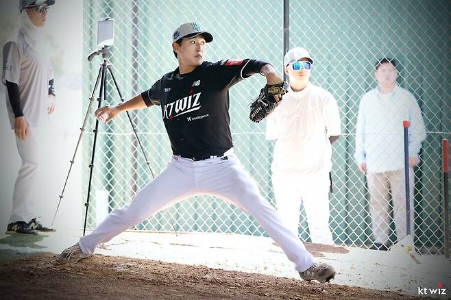 KT 위즈 신인 투수 박지훈(19)은 현재 1군 선수단의 1차 호주 질롱 스프링캠프에서 훈련에 매진하고 있다. 박지훈이 불펜에서 투구하자 KT 이강철 감독, 제춘모 투수코치, 김태한 수석코치의 감탄사가 연신 터져 나왔다. 대체 무슨 공을 던진 걸까.