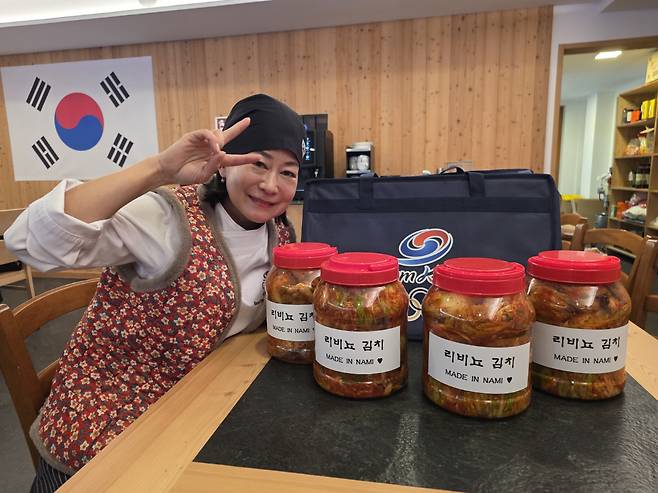 설 명절을 맞아 김 총장은 지친 선수단을 위한 특별한 선물을 준비했다. 평창올림픽 직후 남편 욘 볼슐라거 전 스위스 바이애슬론대표팀 감독과 결혼, 독일 에르푸르트서 한식당 '볼킴'으로 대성공을 거둔 그녀가 오랜만에 솜씨를 발휘했다. K-김장조끼를 입은 채 한국서 공수해온 전라도 젓갈에 한국산 고춧가루로 '엄마표' 김치 50포기(40㎏)를 직접 담갔다. 이름 하여 '나미 김치'. 리비뇨는 물론 밀라노, 코르티나 급식센터에 이 김치를 공수했고, 이 김치는 팀코리아 선수단 설날 특식 도시락과 급식센터 떡국 만찬에 곁들여졌다. 50포기가 순식간에 '솔드아웃'될 만큼 폭발적 인기를 누렸다.