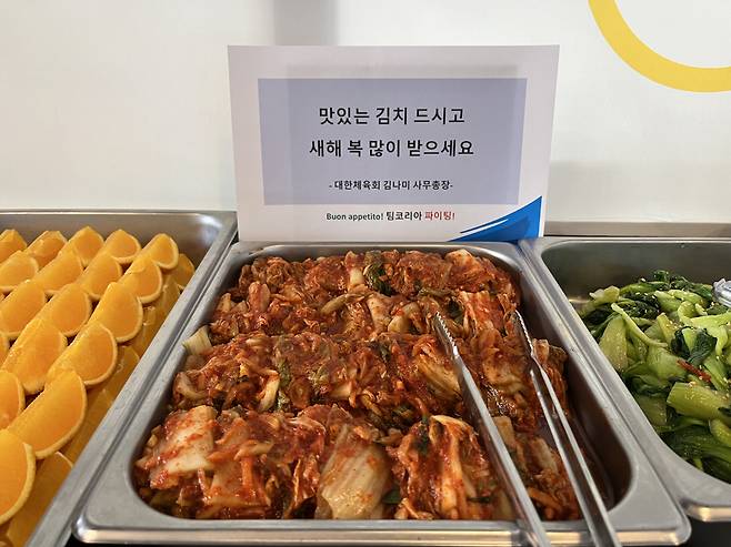 [스포츠조선 전영지 기자]밀라노-코르티나 동계올림픽 기간 중 맞은 민족의 대명절, 설날. '약속의 땅' 리비뇨로부터 김나미 대한체육회 사무총장이 직접 담근 '나미김치'가 밀라노, 코르티나 급식센터에 공수됐다.