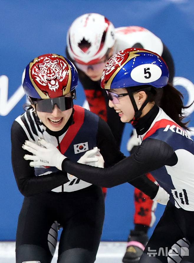 경기 후 공동취재구역(믹스트존)에서 만난 선수들의 얼굴엔 웃음꽃이 피었다. 김길리는 "너무 기뻐서 그냥 언니들에게 달려가고 싶었다"며 웃었다.