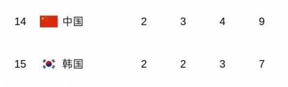 이로써 중국의 메달 수는 금메달 2개, 은메달 3개, 동메달 4개로 총 9개로 늘어났다. 같은 날 최민정-김길리(이상 성남시청)-노도희(화성시청)-심석희(서울시청)가 합을 맞춘 쇼트트랙 여자 3000m 계주에서 대회 2번째 금메달을 추가한 한국을 제치고 종합 14위로 올라섰다.