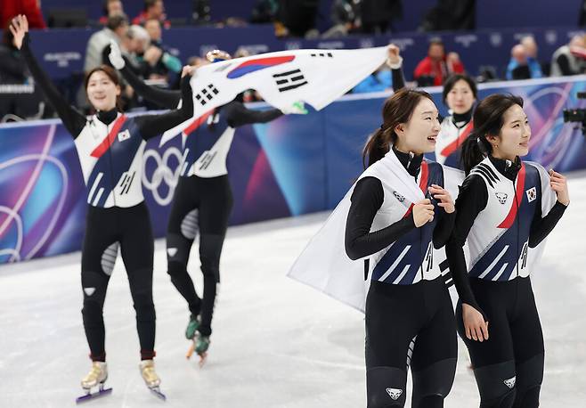 최민정과 심석희는 경기가 끝난 뒤 태극기를 들며 감격스러워했다. 평창 대회 이후 8년 만에 올림픽 무대를 밟은 심석희는 펑펑 눈물을 쏟아냈다.