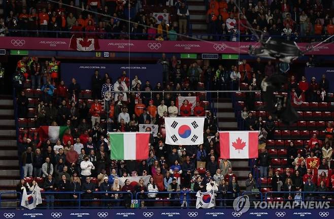 대회 조직위원회는 지난 19일(한국시간) 이탈리아 밀라노 아이스스케이팅 아레나에서 열린 쇼트트랙 여자 3,000m 결승 시상식에서 중앙 태극 문양의 각도가 시계 반대 방향으로 확연히 기울어진 엉터리 태극기를 게양했다. 이날 한국 대표팀의 최민정, 김길리, 노도희, 심석희, 이소연은 결승선을 가장 먼저 통과하며 자랑스럽게 금메달을 목에 걸었다.