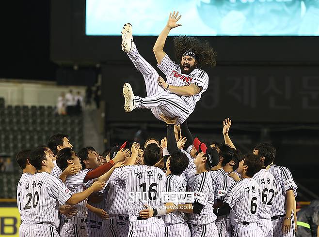 [스포티비뉴스=신원철 기자] 2019년부터 2024년 7월까지 LG 트윈스에서 '장수 외국인 선수'로 활약한 팀 역대 최고 외국인 투수 케이시 켈리가 오랜만에 동료들을 만났다. 오랜만에 재회한 '톰과 제리' 같은 사이 이민호에게 "대가리 박아"라며 기강을 잡더니, 라이브 피칭에서는 오지환을 돌려세우며 여전한 구위를 자랑했다.