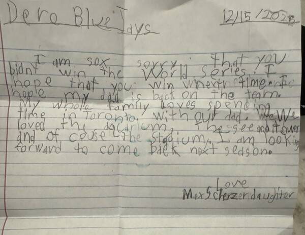 브룩은 아빠가 FA 신분이던 지난 12월, 토론토 구단 앞으로 짧은 편지를 보냈다. "친애하는 블루제이스에게"로 시작하는 이 편지에서 브룩은 "지난 월드시리즈에서 우승하지 못해 정말 아쉬워요. 다음번엔 꼭 이겼으면 좋겠어요"라며 패배의 아픔을 겪은 구단과 아빠의 동료들을 먼저 다독였다.