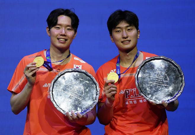 한편, 남자 복식 세계 랭킹 1위 서승재-김원호(이상 삼성생명)조는 결승에서 말레이시아의 아론 치아-소위익(2위)조를 상대로 2대1(18-21 21- 12 21-19) 역전승을 거뒀다. 이로써 둘은 1986년 박주봉-김문수조 이후 한국 선수로는 40년만에 남자복식 2연패를 달성했다.