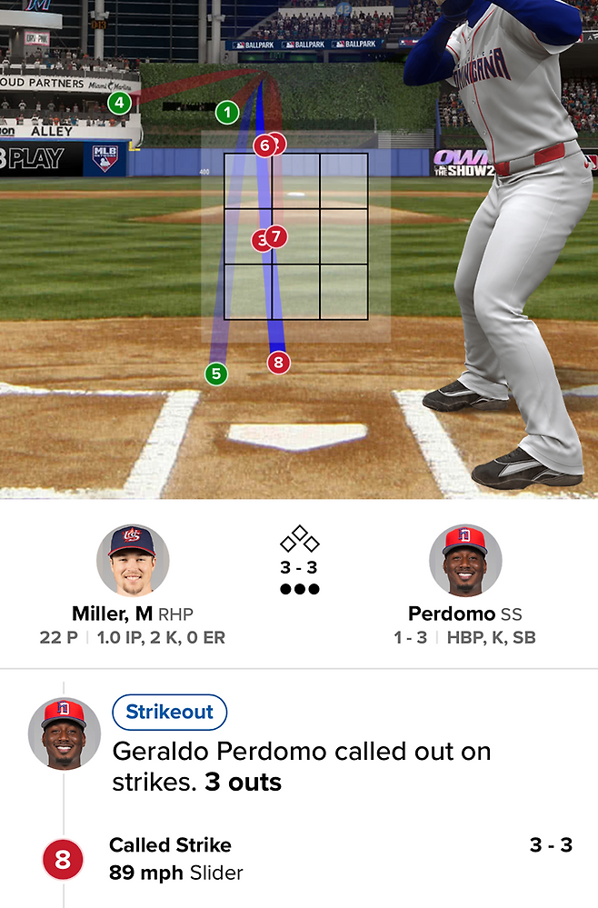 그러나 마지막 54번째 아웃카운트는 씁쓸한 뒷맛을 남겼다. 미국 국가대표 마무리 메이슨 밀러(샌디에이고 파드리스)와 헤랄도 페르도모(애리조나 다이아몬드백스)의 대결이 풀카운트 승부를 거쳐 밀러의 삼진으로 마무리됐다. 8구째 슬라이더에 코리 블레이저 주심의 삼진 선언이 나왔다. 하지만 스트라이크존 아래를 통과하는, 볼로 보이는 공이었다.