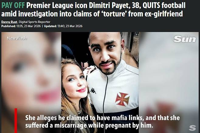 영국 '더선'은 "파예가 전 여자친구로부터 '심리적 고문'을 가했다는 혐의로 고발당해 법적 공방을 벌이는 와중에 갑작스럽게 축구화를 벗기로 결정했다"고 보도했다.