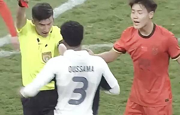 후반 추가시간 그라운드에서 충돌이 발생했다. 중국 쉬안즈젠과 태국 오사마 티앙캄이 나란히 퇴장을 당했다. 티앙캄이 페널티 지역에서 중국 선수를 밀쳐 넘어뜨린 뒤 두 선수 사이에 격렬한 몸싸움이 벌어졌다.