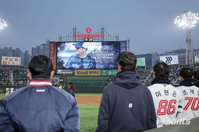홈 첫 경기를 앞두고 롯데가 다양한 행사를 준비한 가운데, 애국가 제창을 마치고 전광판에 영상이 표출됐다. 바로 김민재 코치 추모영상이었다.