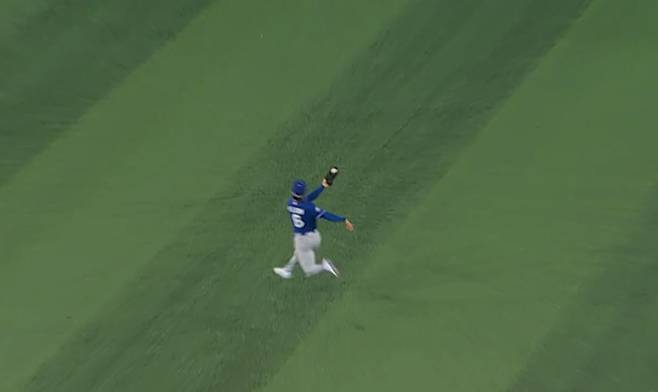 하지만 이날 경기의 하이라이트는 단연 7회 수비였다. 무사 1루 상황에서 나온 뜬공 타구를 끝까지 쫓아간 김혜성은 등진 상태에서 공을 따라가며 포구하는 '오버 더 숄더' 캐치를 완성했다.