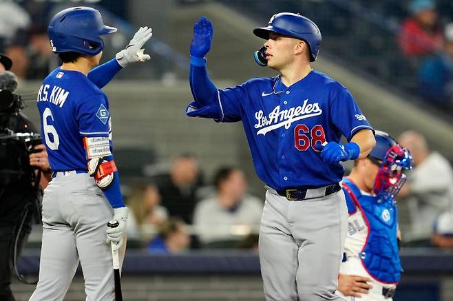 다저스는 장단 5개의 홈런을 앞세워 토론토 블루제이스를 14-2로 크게 제압했다.