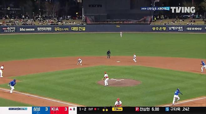 하지만 KIA는 경기 후반 위기를 맞았다. 네 번째 투수 전상현이 8회초 선두타자 양우현에게 2루타를 내줬고, 김지찬의 중견수 뜬공, 류지혁의 볼넷 이후 1사 1, 2루에서 최형우에게 1타점 적시타를 맞았다. 후속타자 르윈 디아즈에게도 1타점 적시타를 내주면서 스코어는 3-3이 됐다.