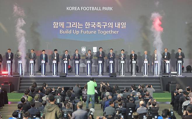 한국 축구의 새로운 요람이 될 코리아풋볼파크는 지난 7일 개관식을 통해 본격적인 운영에 들어갔다. 이날 개관식에는 정몽규 회장과 김석필 천안시장 권한대행, 김대현 문화체육관광부 제2차관, 김태흥 충남지사, 유승민 대한체육회장, 홍명보 남자 축구대표팀 감독, 산지반 발라싱암 FIFA 회원협회본부 국장 등이 참석했다.