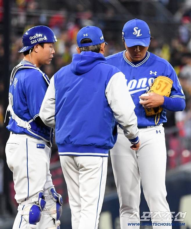 박진만 감독은 "이전 게임에 비해 공의 업다운 등 제구가 불안한 측면이 있었다. 포수가 원하는 쪽에 던지지 못했다"며 썩 만족스럽지 않다는 반응을 보였다.