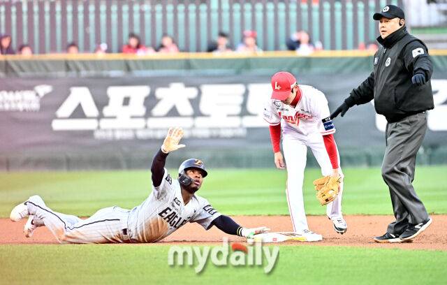 이숭용 감독이 지적한 장면은 1회 나왔다. 주자 없는 1사에서 요나단 페라자가 평범한 중전 안타를 쳤다. 중견수 최지훈이 이를 잡고 천천히 내야로 송구했다. 이 틈을 타 페라자가 2루로 공격적인 주루를 감행, 세이프를 얻어냈다. 이어 문현빈이 1타점 적시타를 신고, 팀에 선취점을 안겼다.