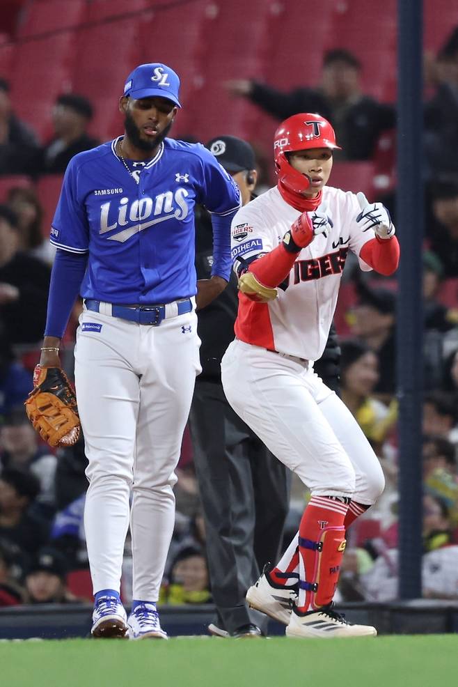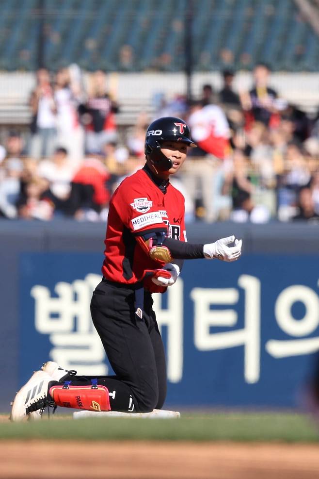 하지만 박재현은 이날 무거운 마음으로 경기를 마무리했다. 수비 때문이다. KIA가 3-1로 앞선 6회초 2사에서 류지혁의 타격 때 다이빙캐치를 시도했으나 공을 잡지 못했다. 이후 후속 동작을 빠르게 가져가지 못했고, 류지혁에게 2루타를 허용했다. KIA 벤치에서 비디오 판독을 요청했으나 원심(세이프)이 그대로 유지됐다.